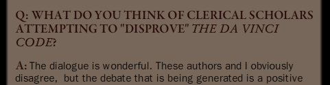 admits that his book Da Vinci Code is fictional.