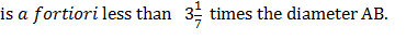 Archimedes’ first section, he calculates Pi, π, to be slightly less than