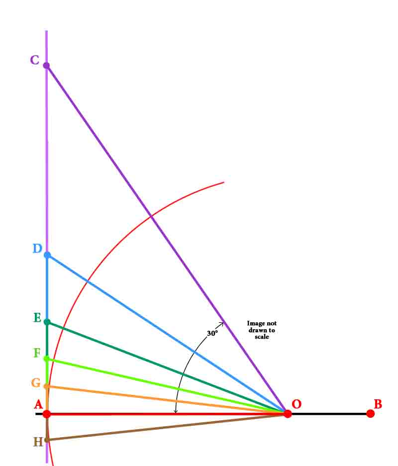 laid a 30° - 60° - 90° Δ Triangle with the longer leg along the